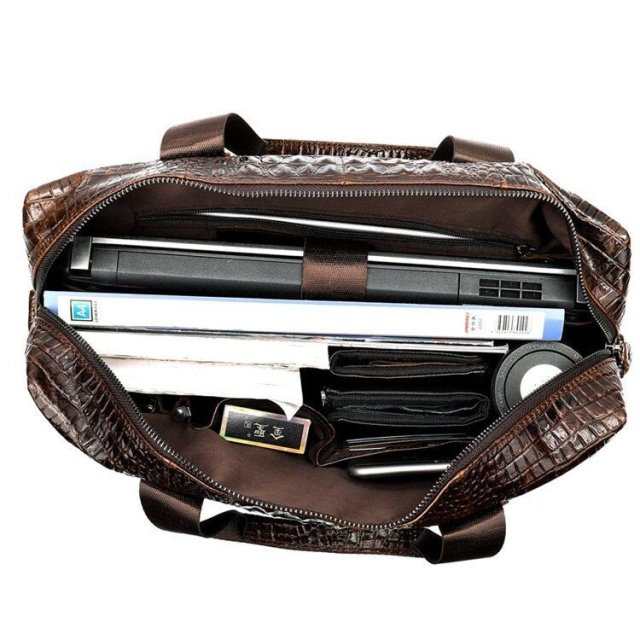 Вы можете носить такую сумку как на плече, так и в руках за ручки. Внутри сумки коричневая подкладка. Смотрится такая сумка очень солидно и роскошно. Кожа такого плана очень хорошо и долго носится и неприхотлива в уходе. Очень комфортно ходить с такой сумкой на работу или на встречи. Также, вы можете взять сумку с собой в поездку. Аксессуар отлично подойдет для мужчин, которые любят чувство стиля и роскошь. Идеальный подарок для любого мужчины.