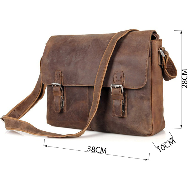 Элитная мужская кожаная сумка из натуральной винтажной кожи. Цвет фурнитуры: серебро. Носиться данная модель через плечо при помощи регулируемого плечевого ремня. На задней внешней стороне расположен карман на молнии. Сумка закрывается клапаном на двух защелках и молнией. Под клапаном расположен накладной карман на молнии. Аксессуар поставляется в текстильном пылезащитном чехле белого цвета. Подкладка выполнена из прочного текстильного материала коричневого цвета.