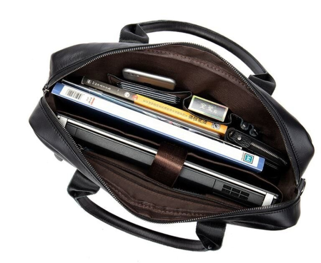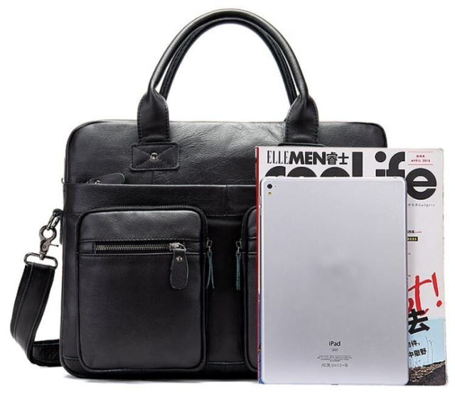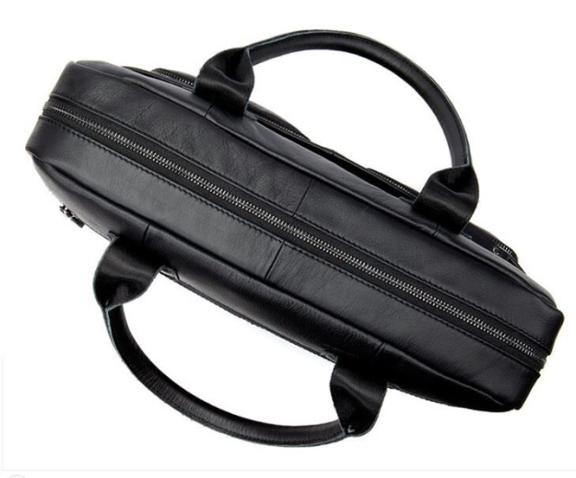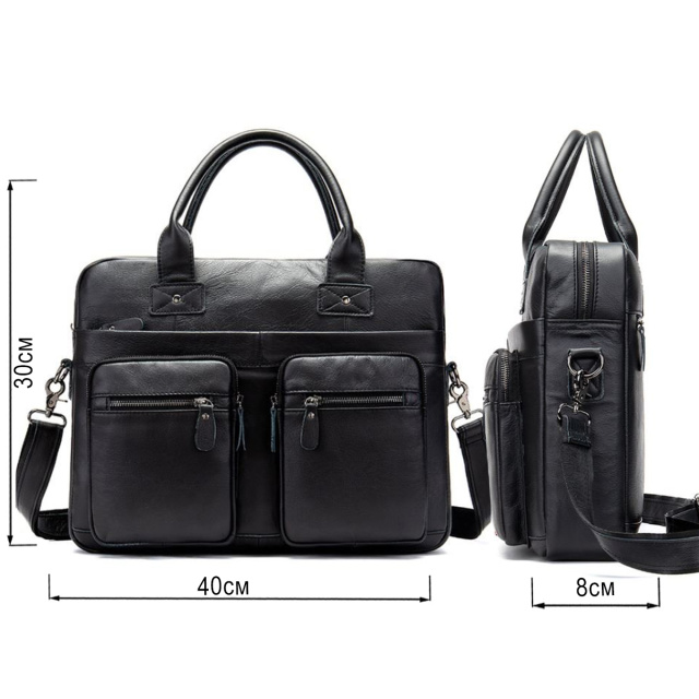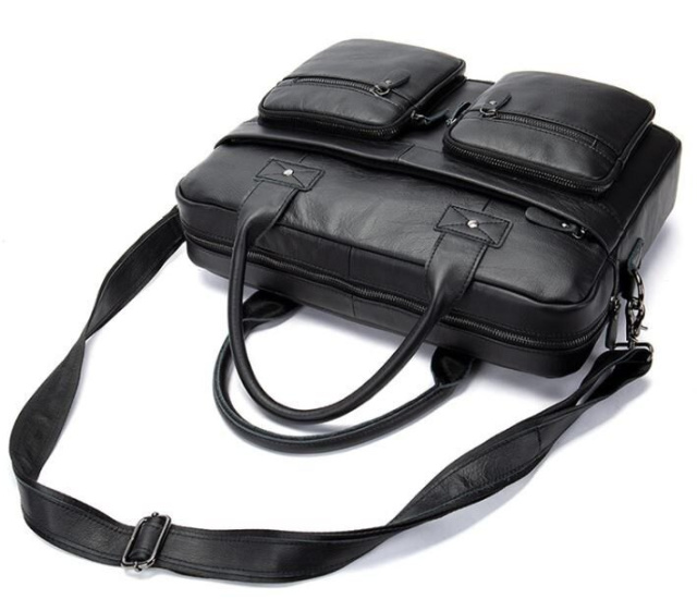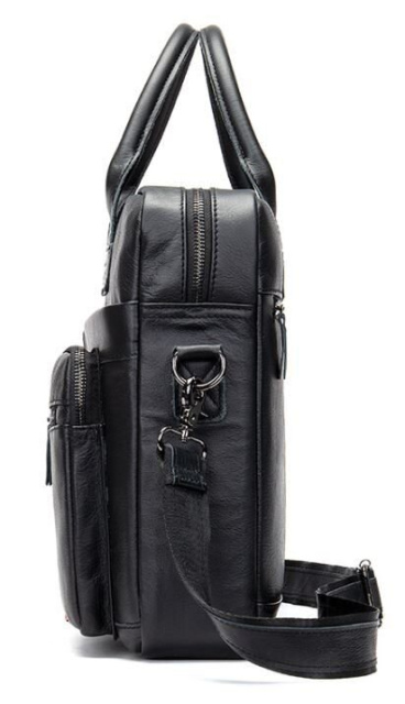 Солидная мужская качественная сумка для деловых мужчин, которые всегда носят все при себе и любят брать с собой ноутбук. Сумку можно носить как в руках с помощью удобных кожаных ручек, так и на плече с помощью съемного текстильного ремешка с кожаной вставкой. Сумка обладает классическим дизайном и универсальным черным цветом. Аксессуар дополнен фурнитурой цвета темного серебра. Сумка по краям прошита ровной черной строчкой. Торчащих ниток нет. Будет прекрасным подарком для близкого человека.