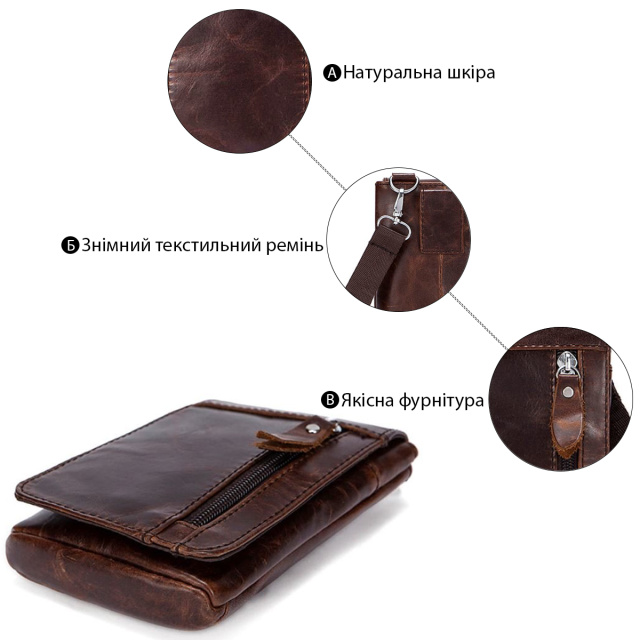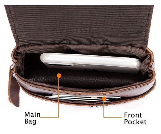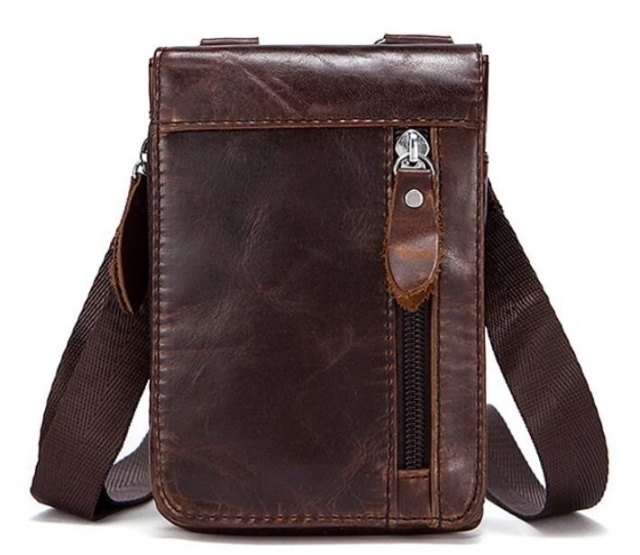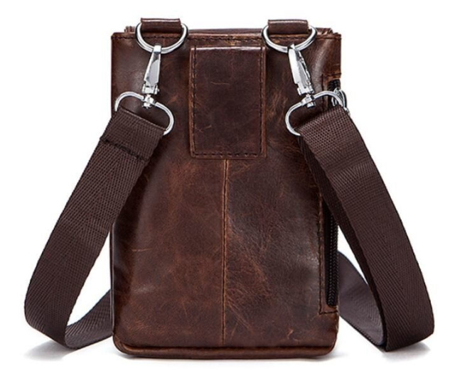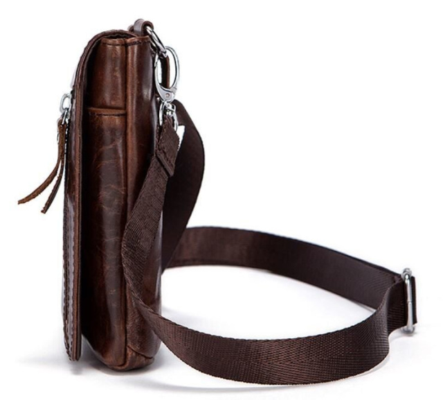 Очень компактная сумочка- клатч для мужчин. Сумка крепится на ремень. Наверное, лучший вариант для тех кто ищет сумку для самых минимальных вещей. Все ваши вещи будут всегда перед глазами и в безопасности. С такой сумки все очень удобно доставать. Аксессуар прошит коричневой нить по краям и имеет коричневую подкладку внутри. Прекрасный подарок для любого мужчины.