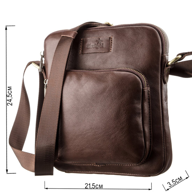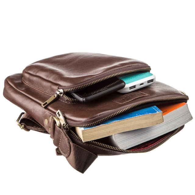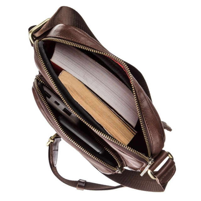 Если вы находитесь в поиске сумки на каждый день с хорошим качеством и удобной функциональностью – советуем обратить внимание на данную модель. Сумка выполнена из качественной натуральной кожи. Закрывается на молнию и дополнена фурнитурой цвета латуни. Внутри сумки есть кармашек для планшета. Ключи, сигареты, паспорт, кошелек, блокнот все самое необходимое вы сможете поместить в эту сумку. Модель не тяжелая и очень аккуратно сделана. Мы уверены, что кожаная сумка – это идеальный и нужный подарок каждому мужчине. Выбирайте ту, которая будет по душе именно вам у нас на сайте.