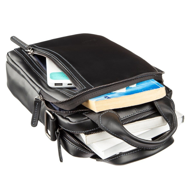 На лицевой стороне также нанесен логотип бренда. Сумка станет прекрасным помощником для любого мужчины. Аксессуар прослужит вам далеко не один год. Покупая сумку от украинского производителя, вы можете быть уверены, что это действительно натуральная кожа и высокое качество.
