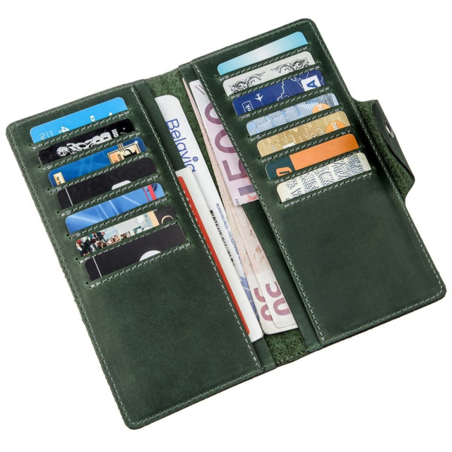 Бумажник унисекс из винтажной кожи SHVIGEL 16168 Зеленый