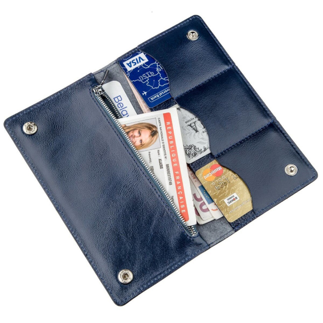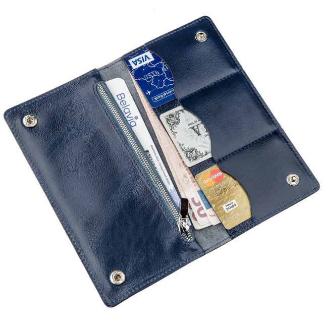 Цвет: синий; Материал: натуральная кожа высокого качества; Размеры (ШхВ, см): 19х9,5х1; Страна производитель: Украина. Внутри: - 2 отделения...