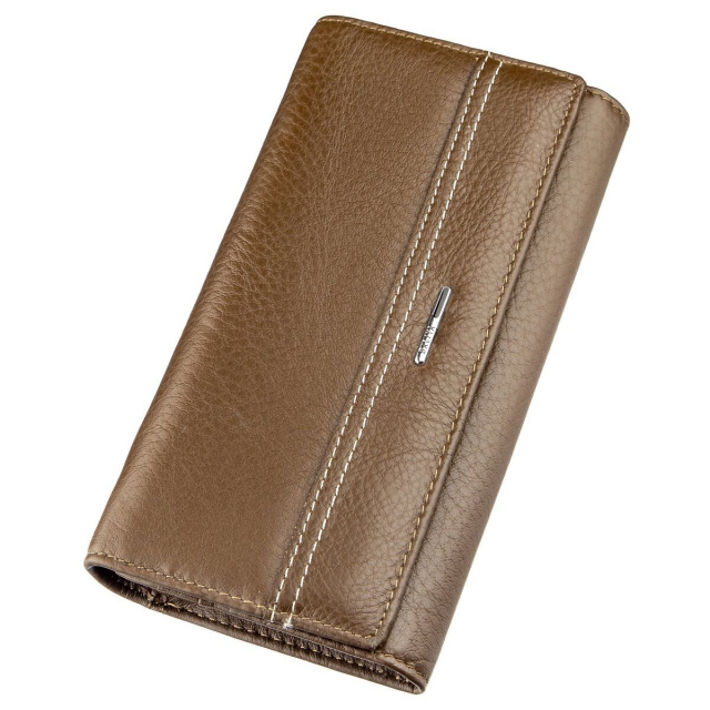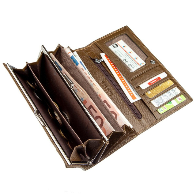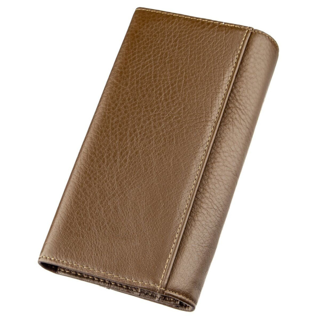 Лаконичный и простой женский горизонтальный кошелек. В изделие легко поместятся купюры в развернутом виде. Монетница с классическим фиксатором и просторные отделения для купюр, ячейки для карточек – удобный набор для каждой девушки. На лицевой стороне тонкая металлическая полоска с надписью бренда. Не броский кошелек хорошо подойдет под любой образ и поместится в женскую сумочку.