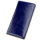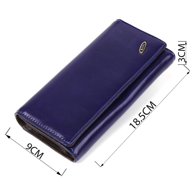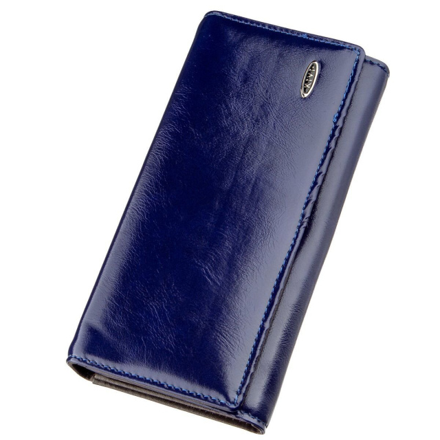 Синий цвет уже не первый год пользуется особым спросом среди представительниц слабого пола. Удобный, мягкий и приятный на ощупь женский кошелек. Модель имеет три отделения для купюр, монетницу и автономный блок с ячейками для кредиток. Кошелек поместится в женскую сумочку и не займет много места. Тип застежки кошелька магнитная кнопка. По краям модель прошита синей ровной аккуратной строчкой.