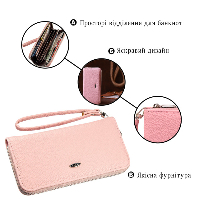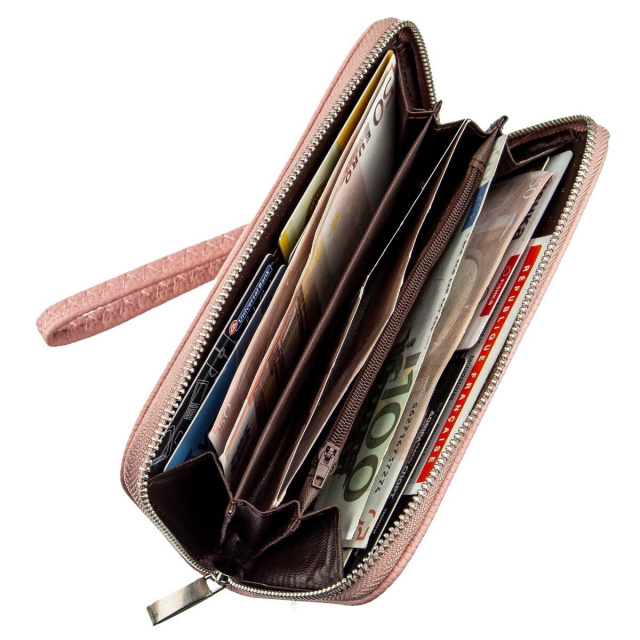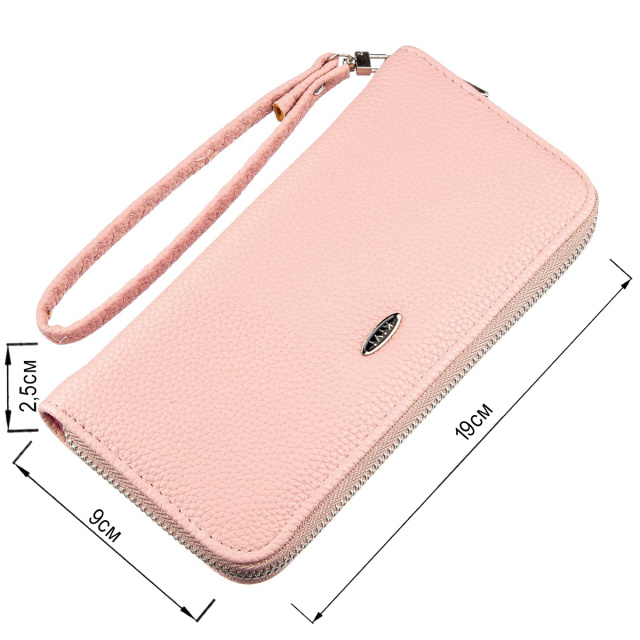 Нежно-розовый кошелек из экокожи с мелкой зернистостью станет прекрасным дополнение к образу каждой девушки. Аксессуар имеет одно основное отделение на молнии с просторными отделами для карточек и купюр. Кошелек дополнен серебристой крепкой фурнитурой. С таким кошельком вы станете еще более привлекательной и ваш образ будет более женственным. Кошелек из экокожи станет хорошей и главное доступной альтернативой кожаному. Обратите внимание, что модель не имеет коробки в комплекте.