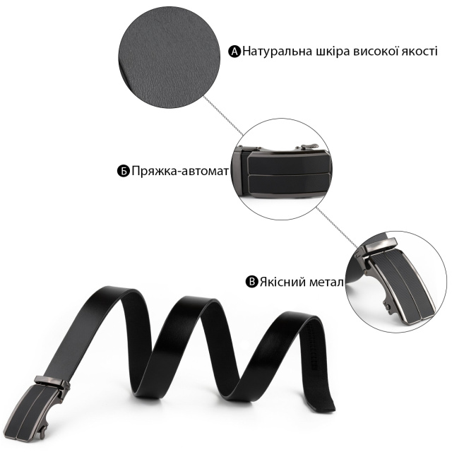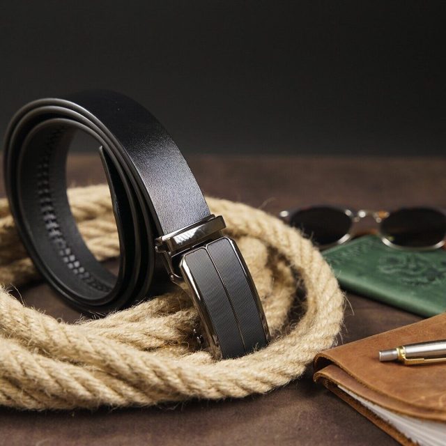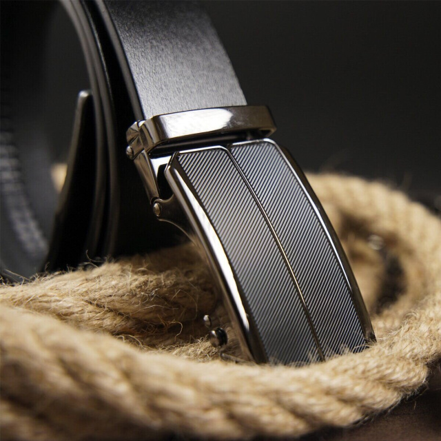 Стильный мужской ремень из натуральной кожи. Черный цвет очень универсален и подойдет под любую обувь. Дополнен ремень пряжкой из крепкого металла и узором напоминающим мелкую сетку. Изделие имеет оригинальный дизайн, продуманный до мелочей. Ремень соответствует всем модным тенденциям. Пряжка автоматического типа очень удобная и практичная. Мы на 100% уверены, что аксессуар прослужит вам далеко не один год. Кожаный ремень - лучший выбор для подарка мужчине.