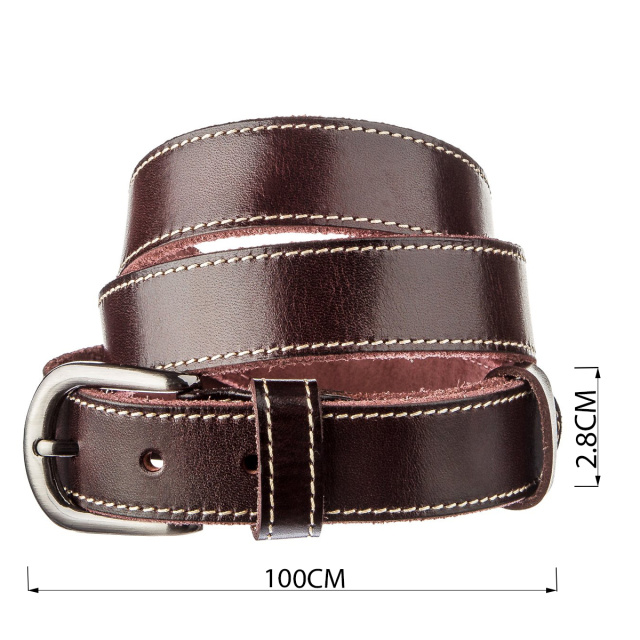 Ремень премиум класса из высококачественной натуральной кожи. Дополнен аксессуар солидной пряжкой с надежного металлического сплава. Ремень регулируется по длине в меньшую сторону, сделать это очень просто, нужно всего лишь открутить винтик возле пряжки, отрезать лишнюю часть и прикрутить обратно. Изделие дополнено ровной светой строчкой на лицевой стороне, которая придает индивидуальности.