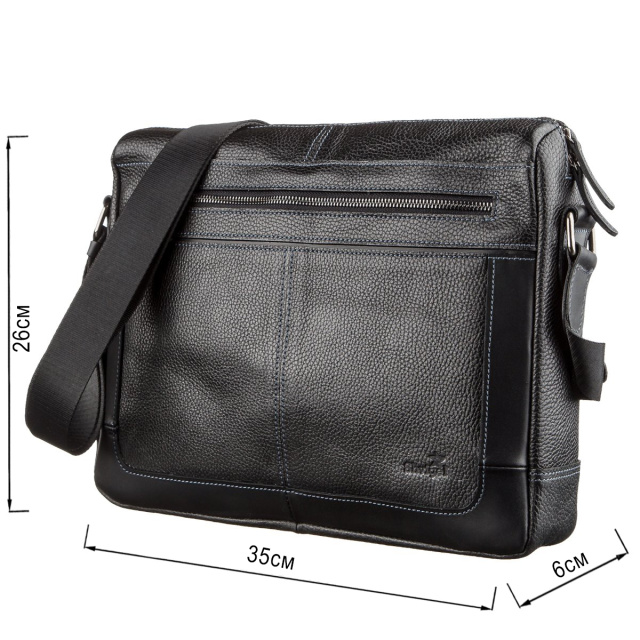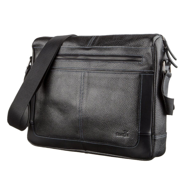 Практичная и удобная деловая кожаная мужская сумка станет прекрасным помощником для любого мужчины. Аксессуар выполнен из натуральной кожи типа флотар, которая особо не прихотлива в уходе и имеет шикарный внешний вид. Аксессуар имеет несъемную текстильную ручку. Внутри – крепкая текстильная подкладка. Изделие дополнено фурнитурой цвета латуни. По краям в дизайн изделия ровная светлая строчка. Закрывается сумка на молнию. Все ваши личные вещи будут в безопасности. Вы можете не сомневаться, что она прослужит вам далеко не один год. В комплекте идет тканевый чехол.