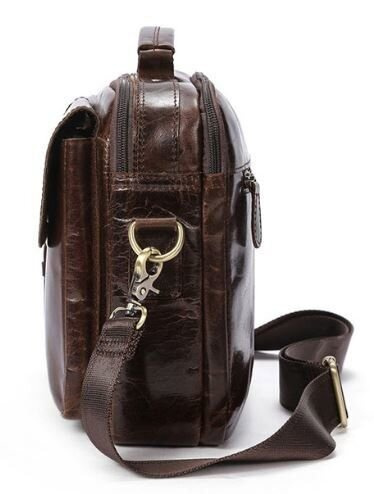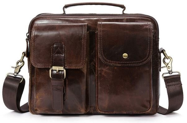 Деловая сумка через плечо среднего размера. Сумка имеет коричневую текстильную подкладку внутри. В аксессуаре удобно носить планшет и ежедневник для встреч. Прекрасный вариант на работу на каждый день. Сумка выполнена из гладкой кожи и прослужит вам достаточно долго. Особенность кожаных сумок в том, что они не требуют к себе какого-то щепетильного ухода. Не пропускает воду и не выцветает на солнце. Вы останетесь довольны таким выбором. Аксессуар упакован в тканевый мешок для удобного хранения.