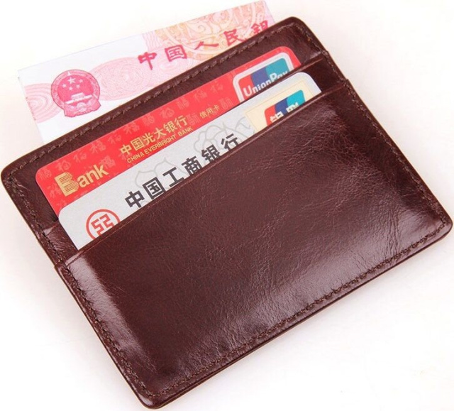 Небольшая кожаная кредитница из натуральной кожи коричневого цвета. Такой аксессуар выглядит очень элегантно и может использоваться для хранения купюр. Кредитница упакована в текстильный пылезащитный чехол.