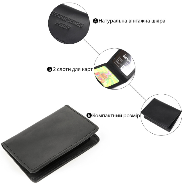 Компактная и практичная обложка для водительских прав из натуральной винтажной кожи, характерными признаками которой являются потертости и неоднородность окраса.
