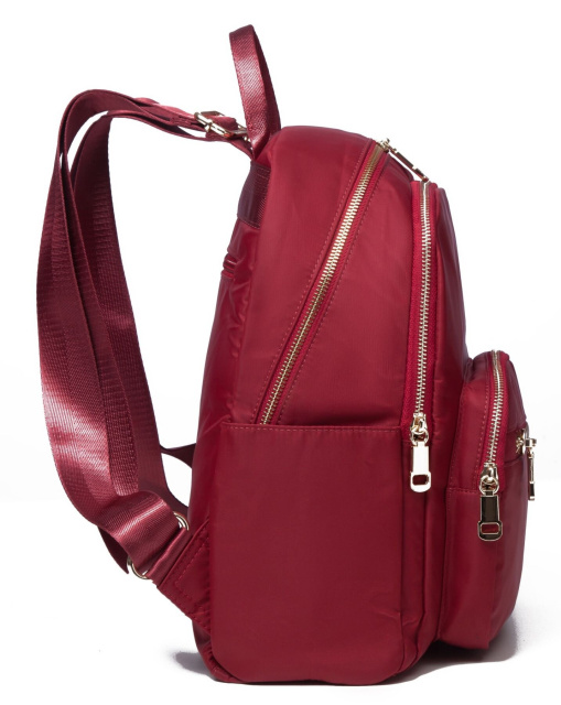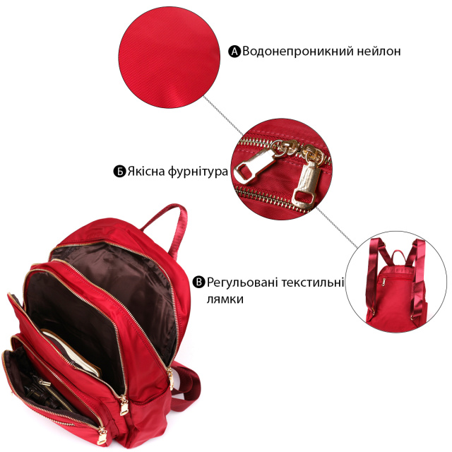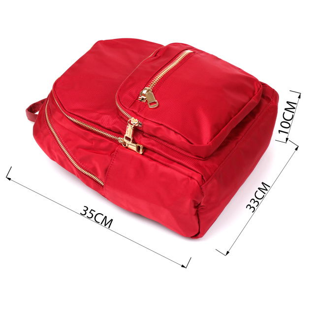 Современный женский рюкзак компактного размера на каждый день. Аксессуар имеет оригинальный классический дизайн, который не привязывает вас к определенному стилю. Модель дополнена блестящей золотистой фурнитурой и очень приятная на ощупь. В аксессуар легко поместится косметичка, деньги, ежедневник или любимая книга, а также другие необходимые женские мелочи. Очень хорошая модель на каждый день. Рюкзак выполнен из плотного нейлона и прослужит вам сравнительно долго. Несмотря на свой небольшой размер аксессуар очень вместительный и удобный. Рюкзак будет идеальным подарком для любой девушки.