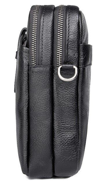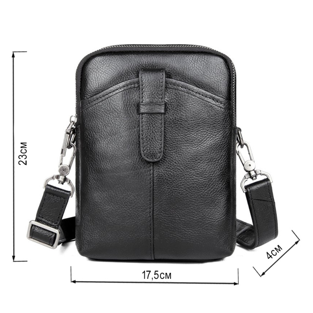 Компактная кожаная мужская сумка из натуральной кожи. Небольшой размер и легкий вес сумки подкупают клиентов. Модель выполнена в коже флотар, которая совсем не прихотлива в уходе. По краям аксессуар прошит ровной строчкой. Сумка станет прекрасным подарком для любого мужчины.
