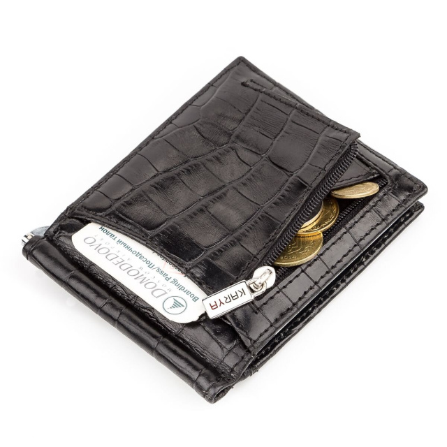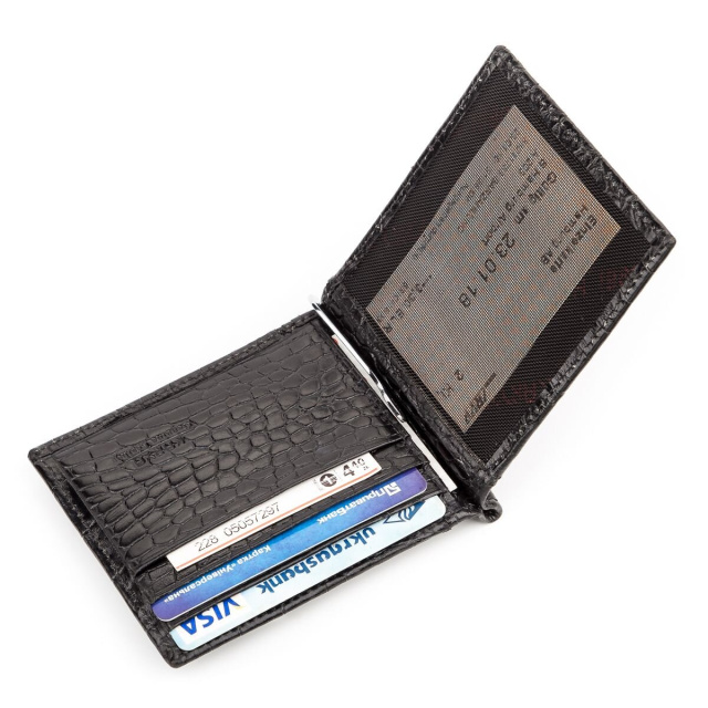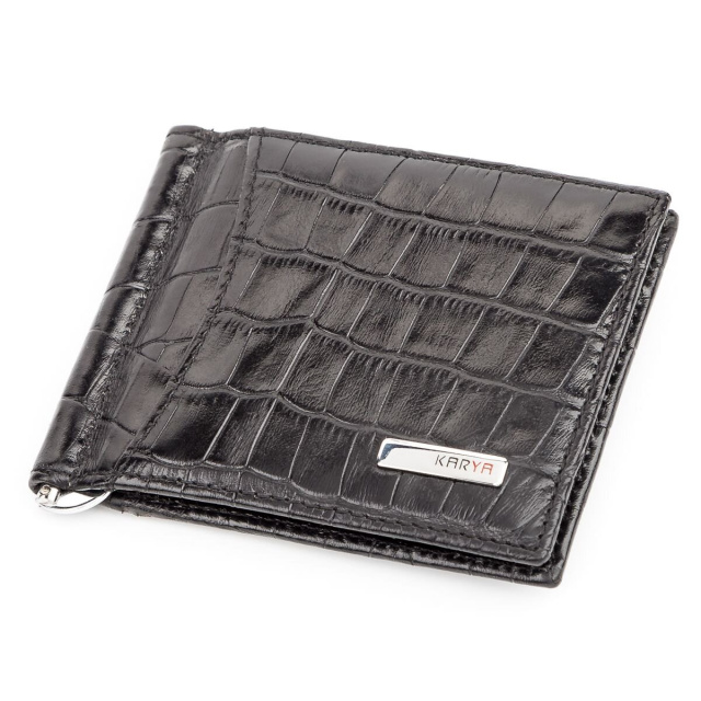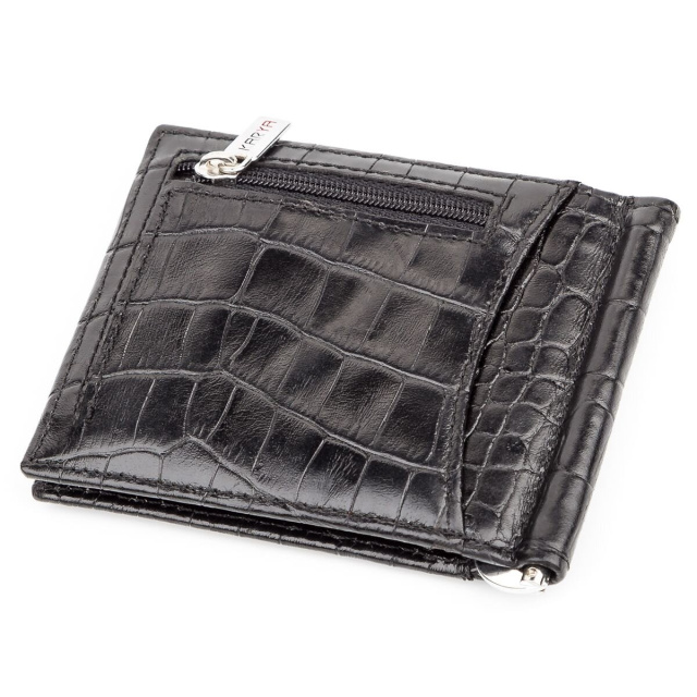 Практичный мужской зажим, из натуральной фактурной кожи под крокодила.