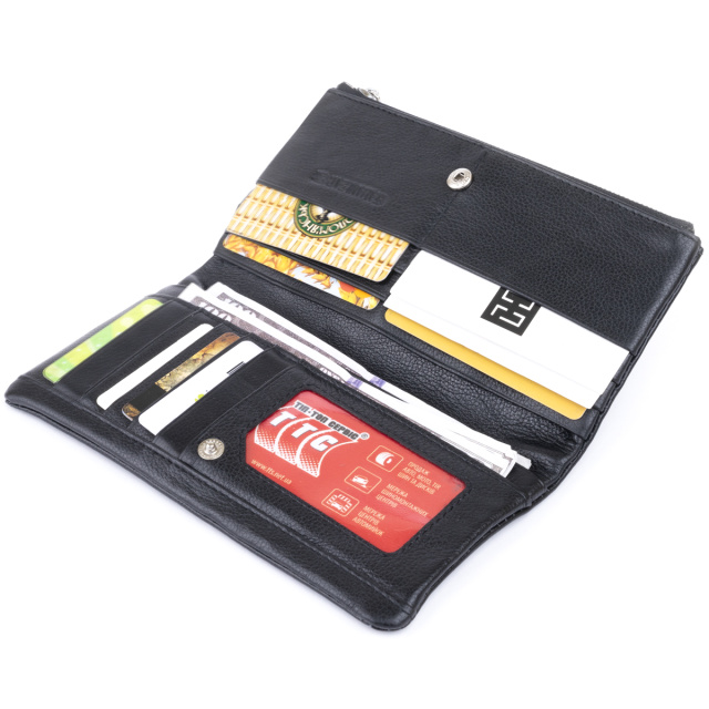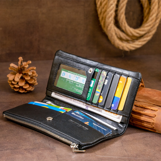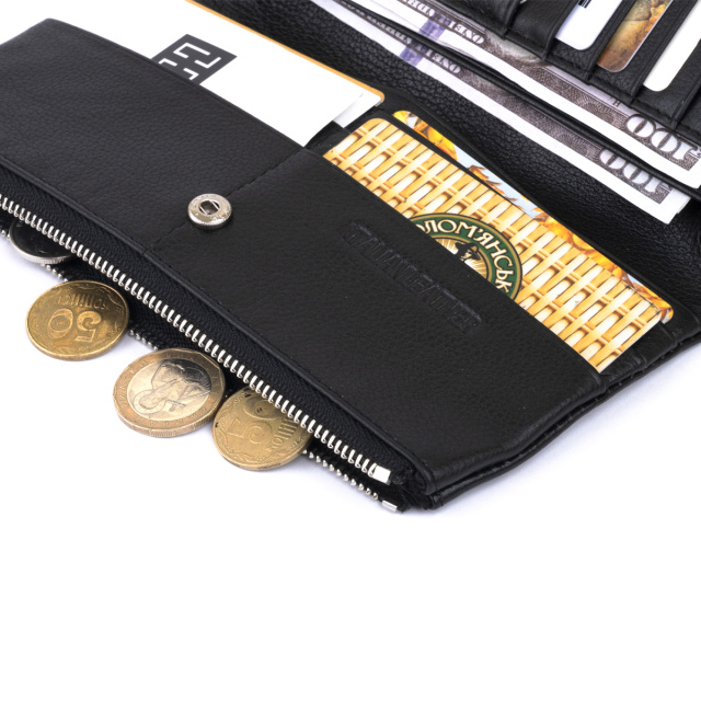 Новая модель кошелька с боковым кармашком на молнии для мобильного телефона или других личных вещей теперь и в классическом черном цвете. Универсальный цвет не привязывает вас к другим аксессуарам и цветовой палитре вашего гардероба. Изделие компактное и поместится в небольшую сумку. Кошелек выполнен из 100% натуральной кожи китайского производства. Функционал модели представлен тремя карманами для купюр, ячейками для кредиток. Закрывается кошелек на кнопку. Укомплектована модель в фирменную коробку белого цвета. Кожаный вертикальный кошелек доступен на нашем сайте в разных цветах: розовом, лиловом, темно-синем, красном, зеленом, синем, бордовом и черном. Заказывайте у нас по самой доступной цене.
