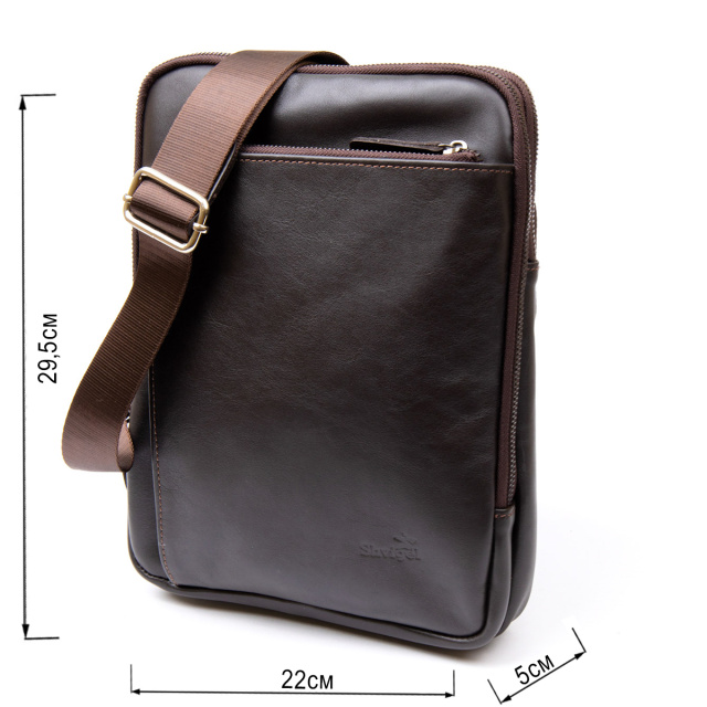 Новая модель с оригинальным дизайном в самой неприхотливой гладкой коже. Изделие не оставит равнодушными поклонников классики, но при этом любителей моды. Модель прекрасно сочетает в себе оригинальность пронизанную нотками классики. Качество сумки продуманно до мелочей. Изделие имеет карман для планшета. На лицевой стороне тисненный логотип с надписью Shvigel. Внутри – плотная текстильная подкладка синего цвета. Сумка будет лучшим подарком для вашего мужчины. В комплекте идет оранжевый чехол.