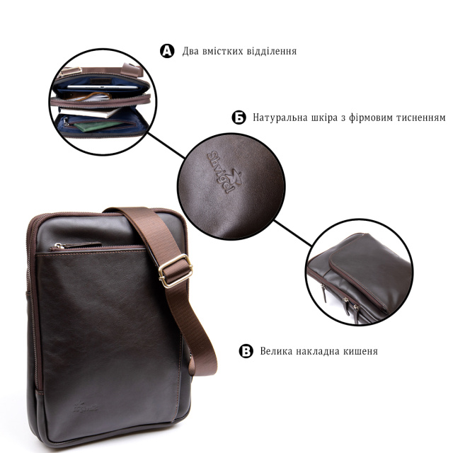 UA MarketКиївJANAВсе товарыТовари та послугиСумки мужскиеМужские сумкиКожаные мужские сумкиМодная сумка планшет с накладным карманом на молнии в гладкой коже 11282 SHVIGEL, Коричневая