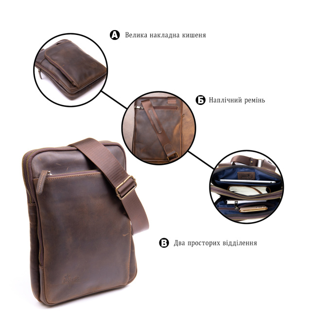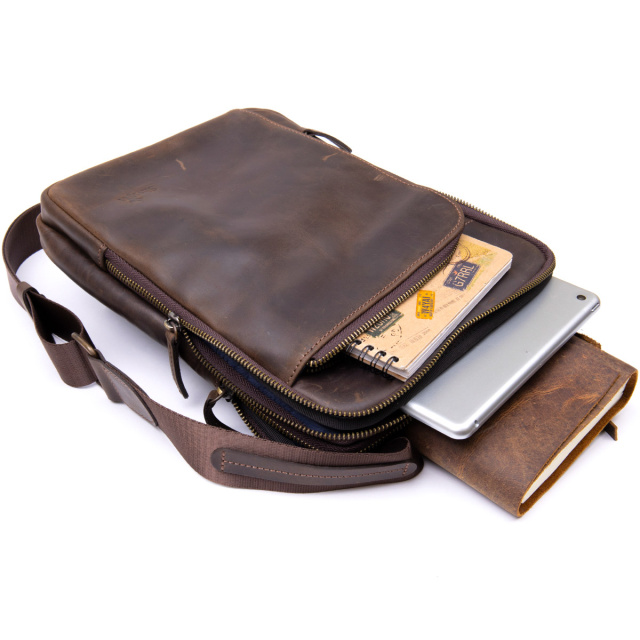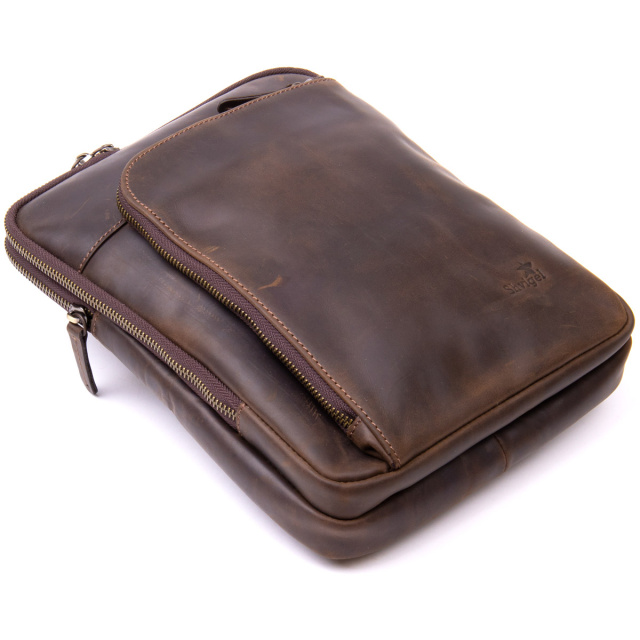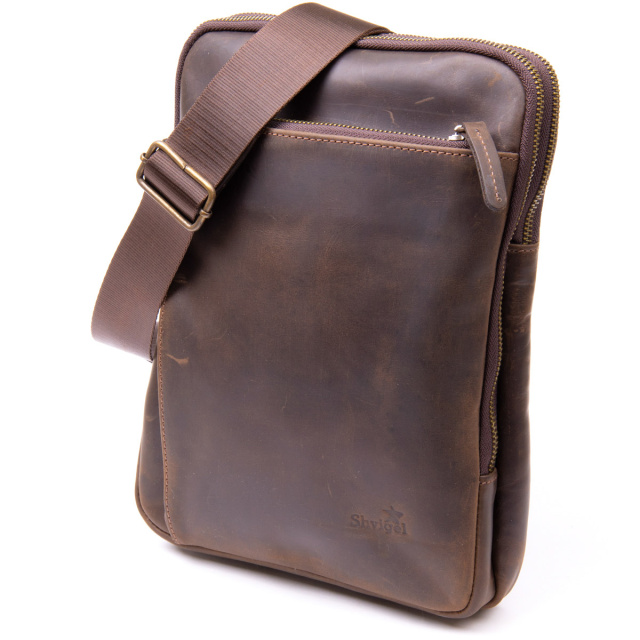 Новая модель с оригинальным дизайном в любимой матовой коже. Винтажный тип кожи стал самым популярным среди наших клиентов. Сумка идеально подойдет для работы и учебы. Вмещает в себя планшет. В модели удобно будет носить ваши личные вещи, необходимые на каждый день. Сумка смотрится очень солидно и держит форму. Надежная фурнитура подчеркивает высочайшее качество пошива модели. С такой сумкой вам будет сложно остаться незамеченным. Уверены, что вы оцените и полюбите нашу новинку от украинского бренда Shvigel. Винтажная сумка – идеальный подарок для самых стильных мужчин.