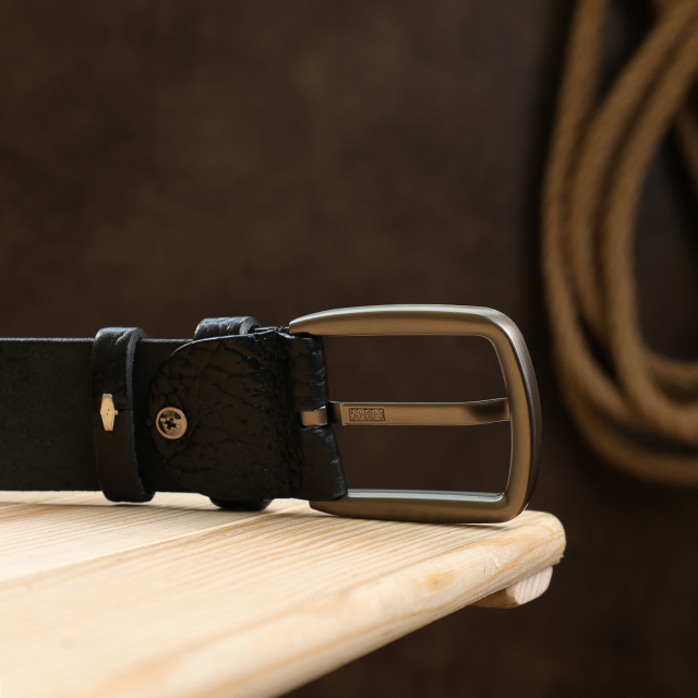 Добротный мужской ремень толщиной 4 см, выглядит очень стильно и презентабельно. Выполнен из натуральной высококачественной кожи и имеет приятную на ощупь зернистую фактуру. Цвет ремня – универсальный черный, поэтому подойдет под вещи любого цвета. Такой ремень станет отличным подарком любимому человеку на любой праздник.