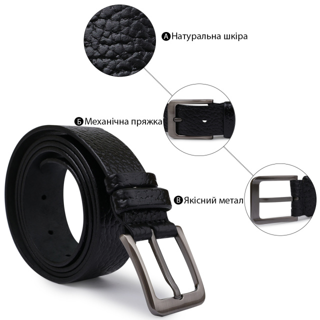 Превосходный мужской ремень из натуральной кожи высокого качества исполнения от украинского производителя. Имеет универсальный черный цвет и приятную зернистую фактуру. Несомненно, станет замечательным подарком дорогому человеку на любой праздник.