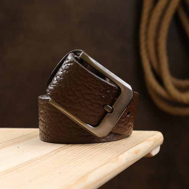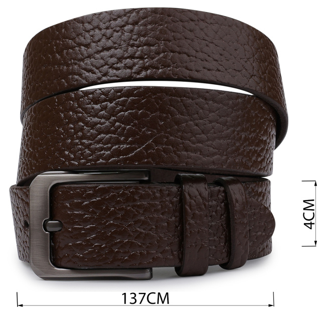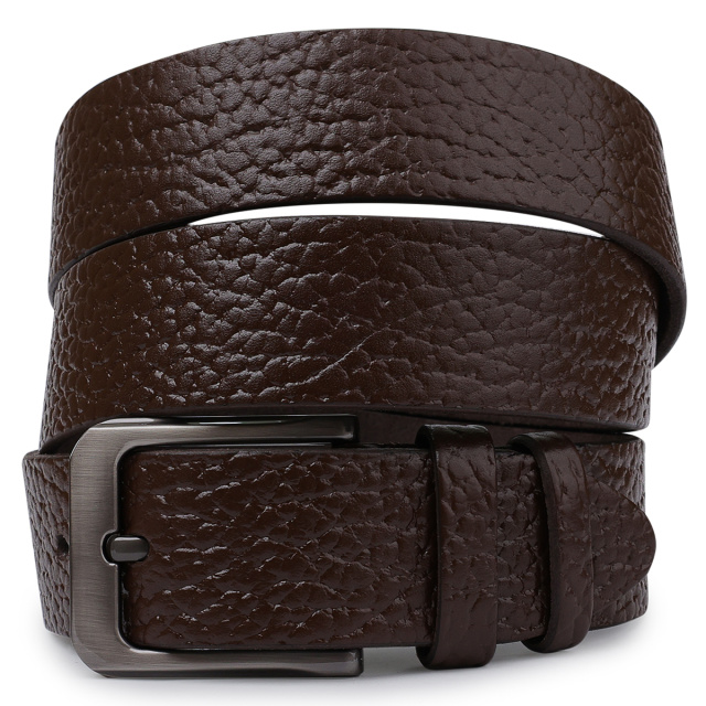 Красивый мужской ремень с шикарной зернистой фактурой, которая придает ему особого шарма. Материал изготовления – высококлассная натуральная кожа. Имеет классическую пряжку, которая очень практичная и удобная в эксплуатации. Такой ремень станет чудесным подарком мужчине любого возраста и статуса.