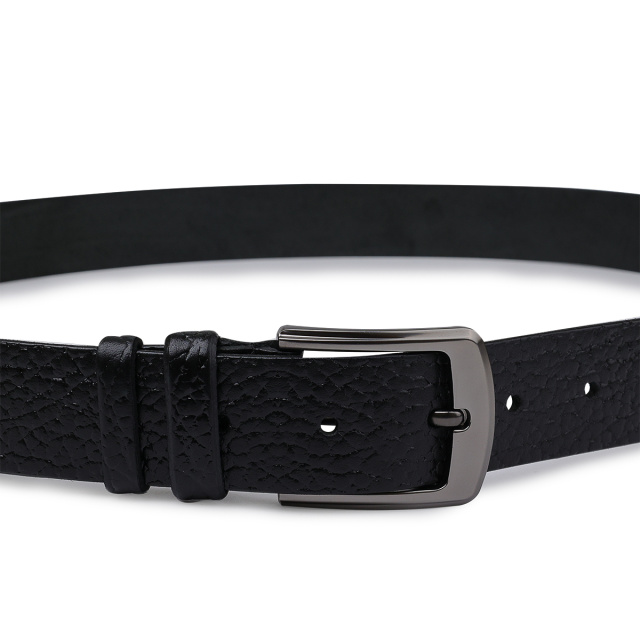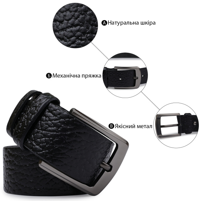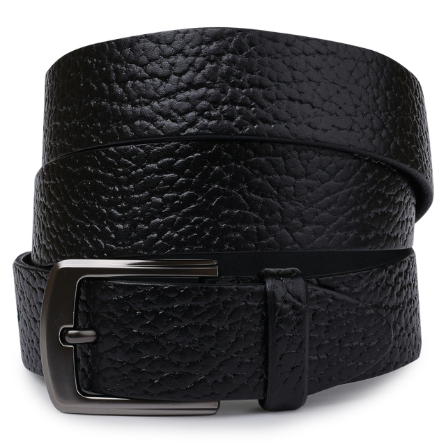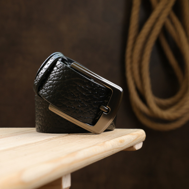 Шикарный высококачественный ремень с классической пряжкой. Изготовлен из натуральной кожи с высокими показателями устойчивости к износу. Цвет изделия – черный, что делает его универсальным, ведь подойдет данная модель практически под любую одежду и обувь. Также стоит отметить отличную и приятную на ощупь зернистую фактуру.