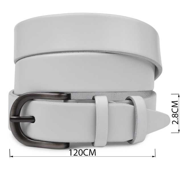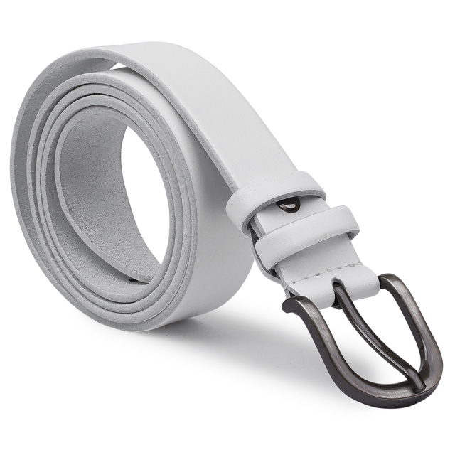 Красивый женский ремень из натуральной высококлассной кожи с отличными эксплуатационными показателями. Имеет универсальный белый цвет, что не привязывает к определенному стилю в одежде. Фактура изделия – гладкая, пряжка в ремне имеет классический механизм и аккуратный дизайн.