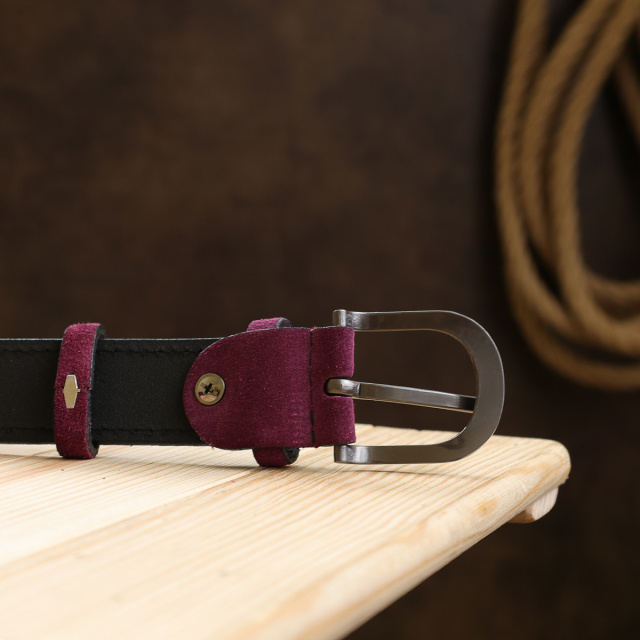Красивый замшевый ремень высокого качества исполнения и материалов от известного украинского производителя. Изделие имеет очень красивый насыщенный фиолетовый цвет, что смотрится очень модно и необычно. Материал изготовления – высококлассная натуральная кожа повышенной износоустойчивости.