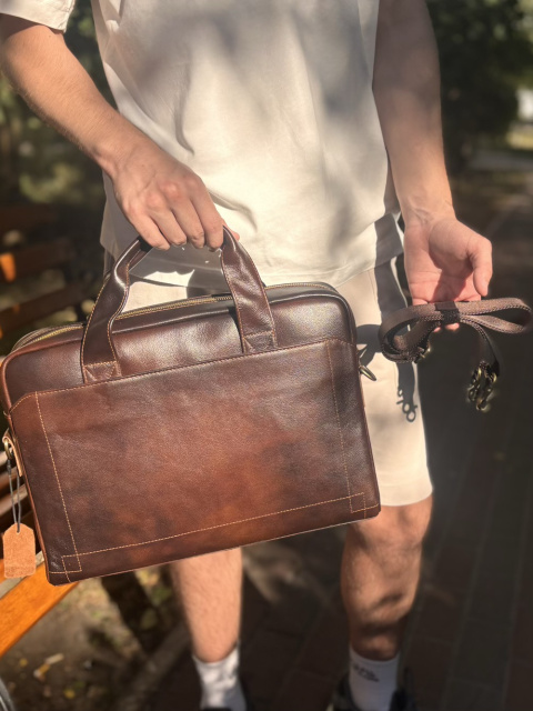 Кожаная мужская сумка для ноутбука Vintage 20470 Коричневый