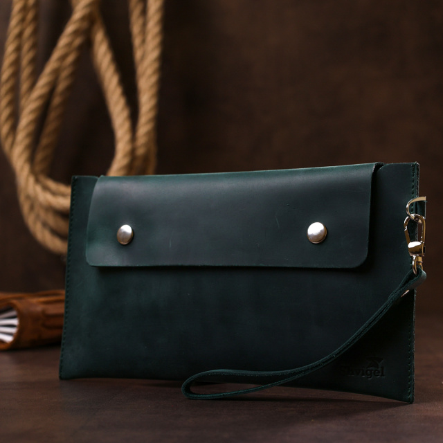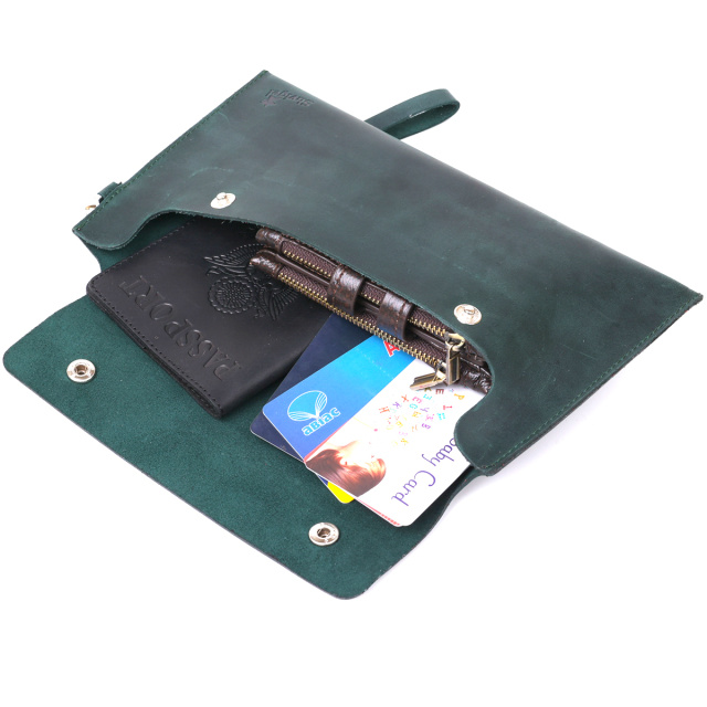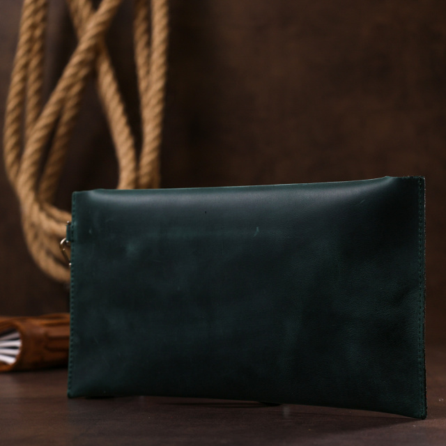 Практичная и удобная в использовании тревел-косметичка от украинского производителя. Выполнена из натуральной высококлассной кожи с отменными характеристиками и показателями прочности. Цвет изделия – матовый темно-зеленый, фактура – гладкая и очень приятная на ощупь. Благодаря, съёмному ремешку превращается в клатч.