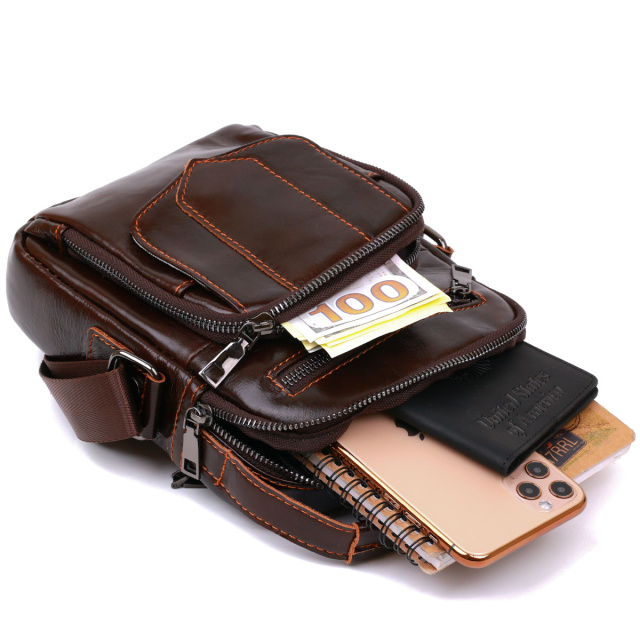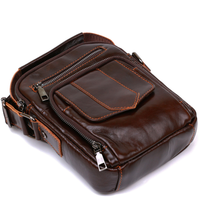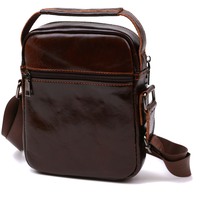 Практичная повседневная сумка мессенджер для мужчин. Изделие идеального размера для работы или учебы. Сумка красивого коричневого цвета, который выделит вас из толпы. Сумка из качественной натуральной кожи, мягкой и приятной на ощупь. Поверхность кожи глянцевая и хорошо держит форму. Сумка имеет достаточно отделений. Качество изделия очень высокое. Торчащие нитки отсутствуют, крепкая фурнитура и плотная подкладка. Сумка дополнена разнообразными кармашками для вашего удобства. Данная модель станет прекрасным подарком для любого мужчины. В комплекте идет пылезащитный чехол.