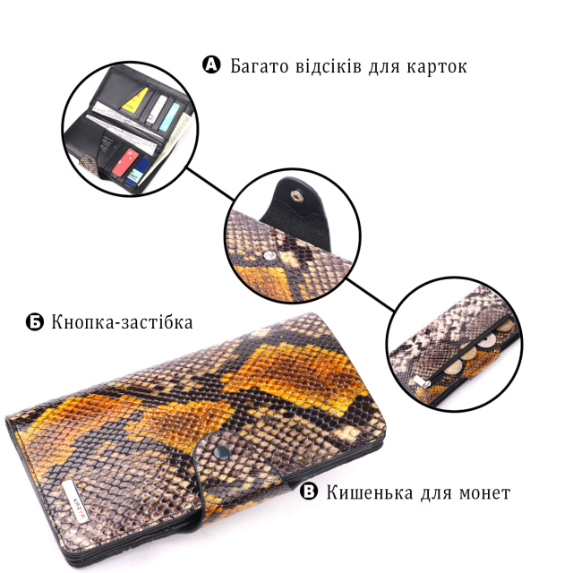 UA MarketКиївJANAВсе товарыТовари та послугиСумки мужскиеКошелькиЖенские кошелькиНеобычное женское портмоне из натуральной фактурной кожи под змею KARYA 21004 Разноцветный