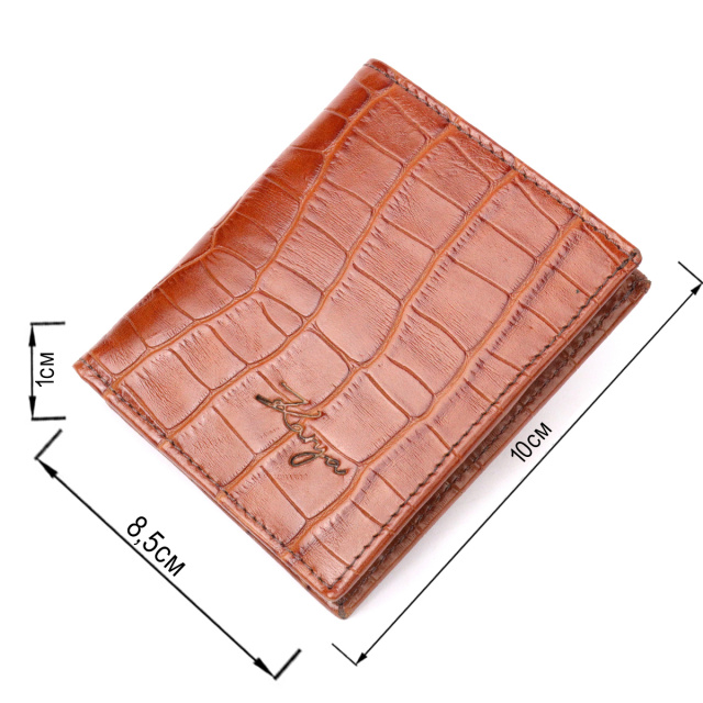 Компактный мужской кошелек из натуральной кожи с тиснением под рептилию, в коричневом цвете. Изделия закрывается на кнопку. Аксессуар упакован в фирменную коробочку. Изделия из натуральной кожи всегда будут отличным подарком для близкого человека.
