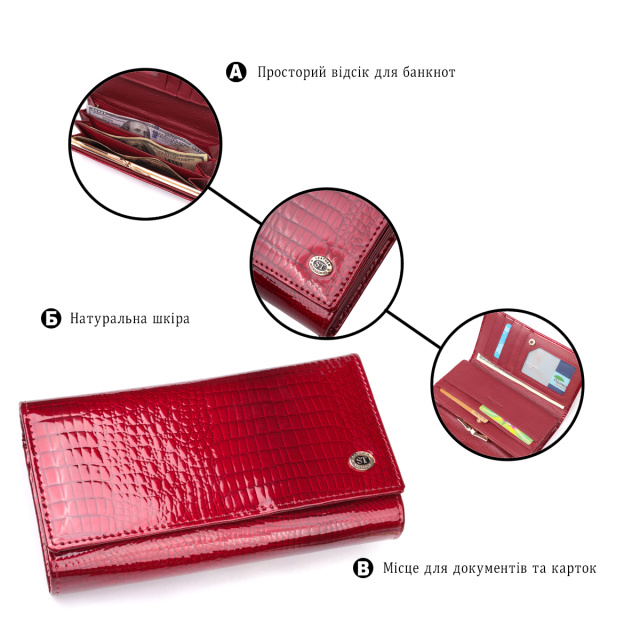 - три больших отделения для купюр по всей длине;