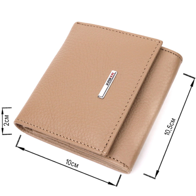 Отличный компактный женский кошелек из натуральной кожи высокого качества. Внутри есть отделение для купюр, шесть ячеек для кредитных карт, необычная монетница и скрытый один карман. В изделии использована качественная фурнитура, а также прочная фирменная подкладка. Не большой кожаный кошелек поместится даже в самую маленькую сумочку. Закрывается модель в два сложения на кнопку. Такой кошелек, однозначно, порадует любую женщину.