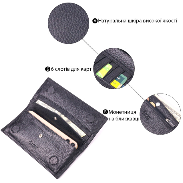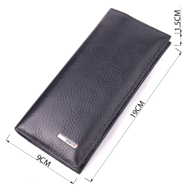 Практичное мужское портмоне из натуральной зернистой кожи в классическом черном цвете. Изделие имеет продуманный до мелочей дизайн и качественную фурнитуру, очень практичное. В портмоне помещаются купюры в развернутом виде. Дополнен аксессуар блоком для кредиток, который извлекается, он располагается внутри кошелька в специальном кармашке. Изделие удобно лежит в руке. Отличный подарок для ваших близких.