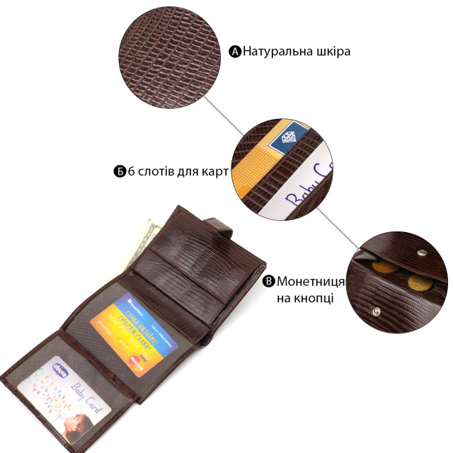 - монетница, что закрывается клапаном на кнопку;