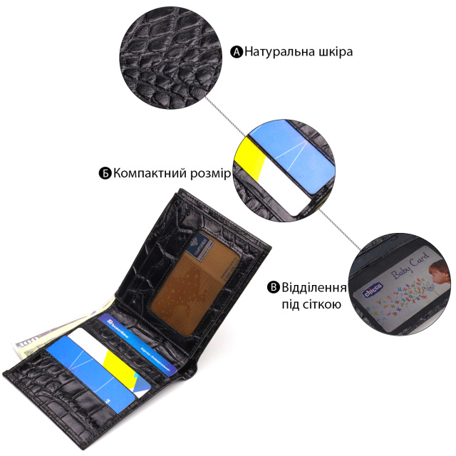 Практичный мужской бумажник из натуральной кожи с тиснением под крокодила. Аксессуар имеет основное отделение для купюр, два кармана под сеточкой, двенадцать ячеек под кредитки, три скрытых кармана. Если Вы выбрали товар этой фирмы, можете не сомневаться, что изделие прослужит очень долго и не потеряет свой первоначальный вид.