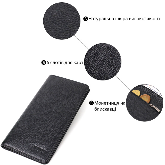 Стильное узкое мужское портмоне, из натуральной кожи, вертикального типа. В данный аксессуар отлично помещаются купюры всех номиналов. Изделие состоит из трех отделений для купюр, шести ячеек для кредиток, кармана на молнии, через всю длину и одного отделения под сеткой. Закрывается кошелек пополам без застежки. Изделия из натуральной кожи всегда будут отличным подарком для близкого человека.