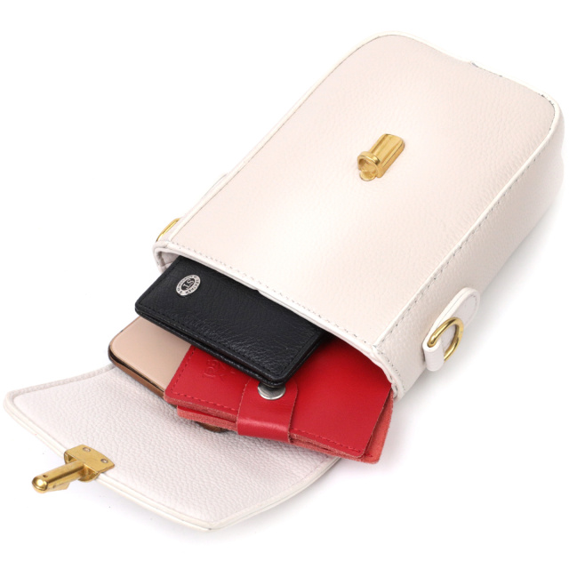 Женская сумка вертикального формата, что закрывается клапаном на интересную механическую защелку. Пошито изделие из натуральной кожи флотар, которая неприхотлива в уходе и долго носится. Аксессуар состоит из двух отделений. Носить сумку можно на плече и через плечо, для этого имеется съемный кожаный ремень. В аксессуаре использована качественная фурнитура цвета желтого золота. Кожаная сумка - лучший подарок для любой девушки.