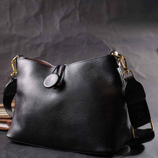 Оригинальная женская сумка без подкладки, с твердым дном и съемной тканевой косметичкой внутри - не оставит равнодушной ни одну женщину. Изделие пошито из качественной натуральной кожи, которая долго носится и не теряет свой первоначальный вид. Аксессуар состоит из одного основного отделения внутри которого расположена съемная тканевая косметичка. Носить сумку можно в руке, на плече и через плечо, для этого имеются кожаный и текстильный съемные ремни. В изделии использована качественная фурнитура цвета желтого золота. Универсальный вариант сумки как на вечер так и в качестве сумочки на каждый день.