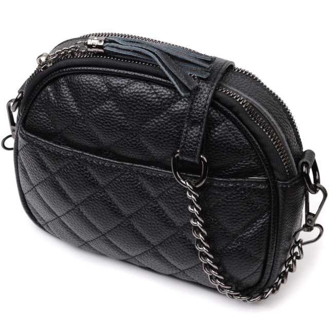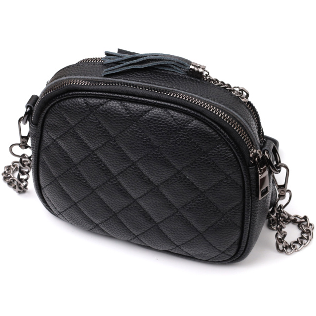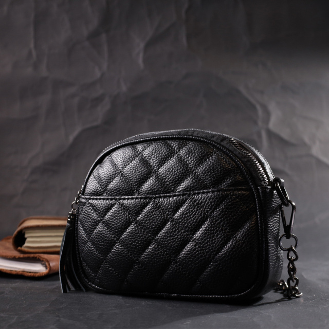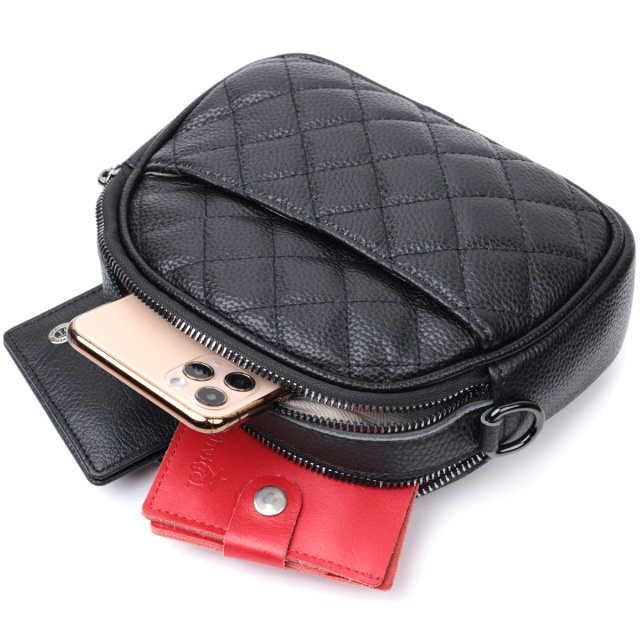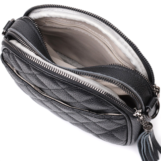 Оригинальная сумка для женщин небольшого размера на два автономных отделения из натуральной кожи флотар, стеганная модными ромбами. Аксессуар состоит из двух автономных отделений, кармана открытого типа, потайного кармана на молнии и наружного кармана открытого типа. Носить сумку можно в руке, на плече и через плечо, для этого имеется кожаный съемный ремень. В аксессуаре использована качественная фурнитура цвета темного серебра. Отличный вариант сумки для женщин, которые любят качественные и стильные вещи.