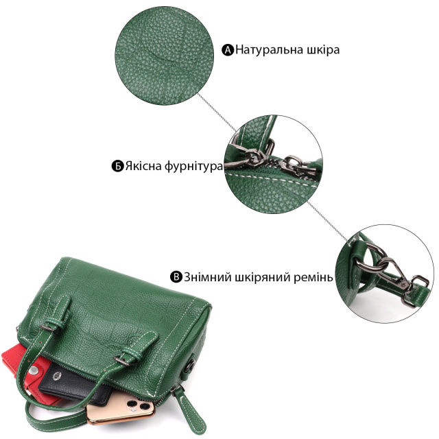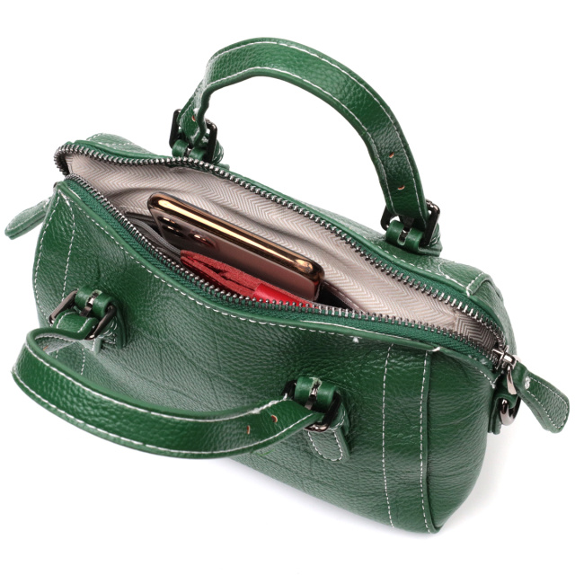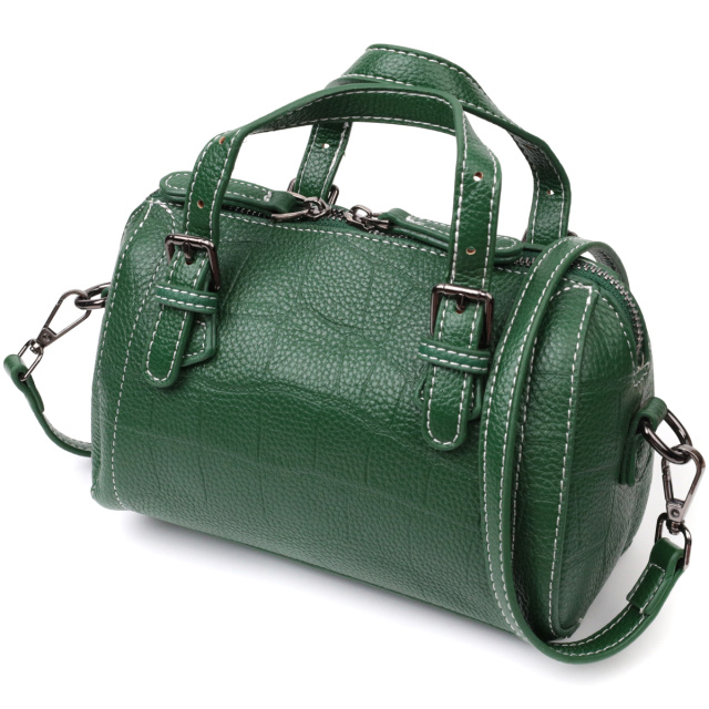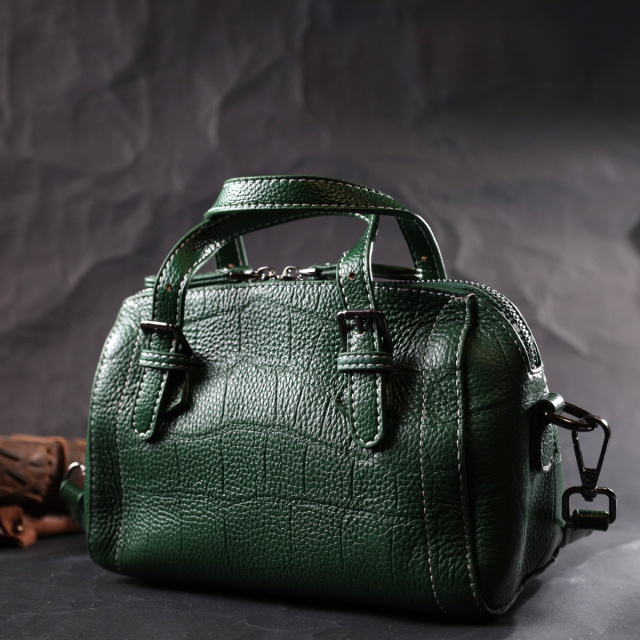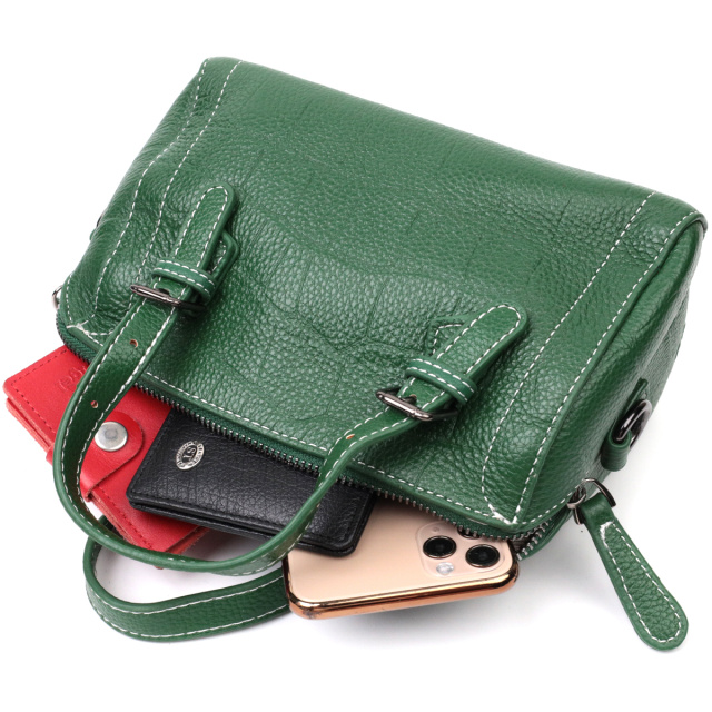 Фактурная женская сумка из натуральной кожи с тиснением под крокодила. Аксессуар состоит из одного отделения, кармана на молнии, потайного кармана на молнии и двух карманов открытого типа. Носить сумку можно в руке, для этого предусмотрены регулируемые кожаные ручки, а также на плече и через плечо, для этого имеется кожаный съемный ремень. В аксессуаре использована качественная фурнитура цвета серебра. Отличный вариант сумки для женщин, которые любят качественные и стильные вещи.