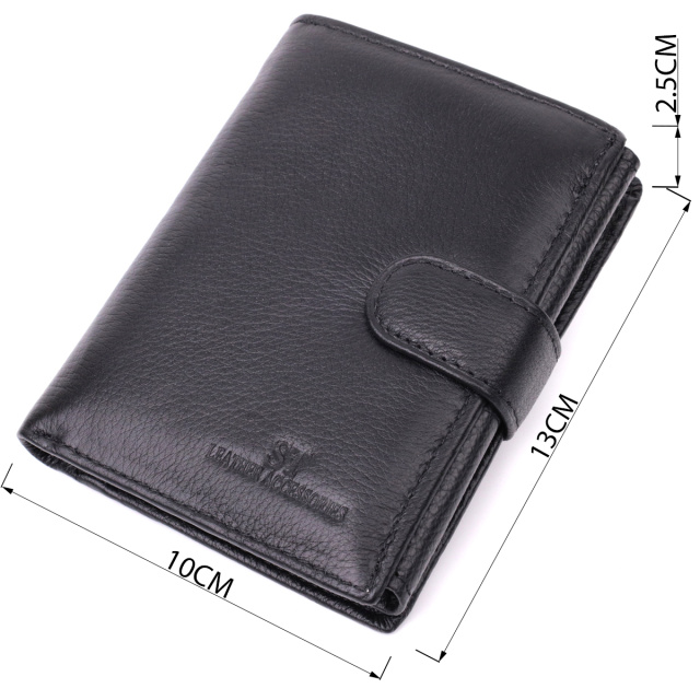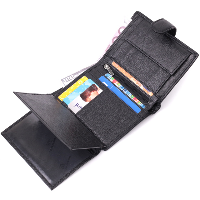Мужское вместительное портмоне, которое украшено тиснением логотипа производителя на лицевой стороне. Аксессуар из натуральной кожи, он состоит из одного отделения для купюр, кармана на молнии, четырех ячеек для карт, трех скрытых карманов, двух карманов под пленкой и кармана для монет. Портмоне дополнено надежной фурнитурой и крепкой подкладкой, закрывается пополам, хлястиком на кнопку. Кожаный и качественный аксессуар на подарок, это всегда очень хорошая идея.