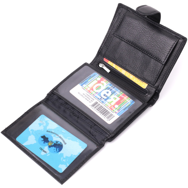 Добротное мужское портмоне которое украшено металлическим логотипом производителя на лицевой стороне. Аксессуар из натуральной кожи, он состоит из одного отделения для купюр, кармана на молнии, четырех ячеек для карт, трех скрытых карманов, двух карманов под пленкой и кармана для монет. Портмоне дополнено надежной фурнитурой и крепкой подкладкой, закрывается пополам, хлястиком на кнопку. Кожаный и качественный аксессуар на подарок, это всегда очень хорошая идея.