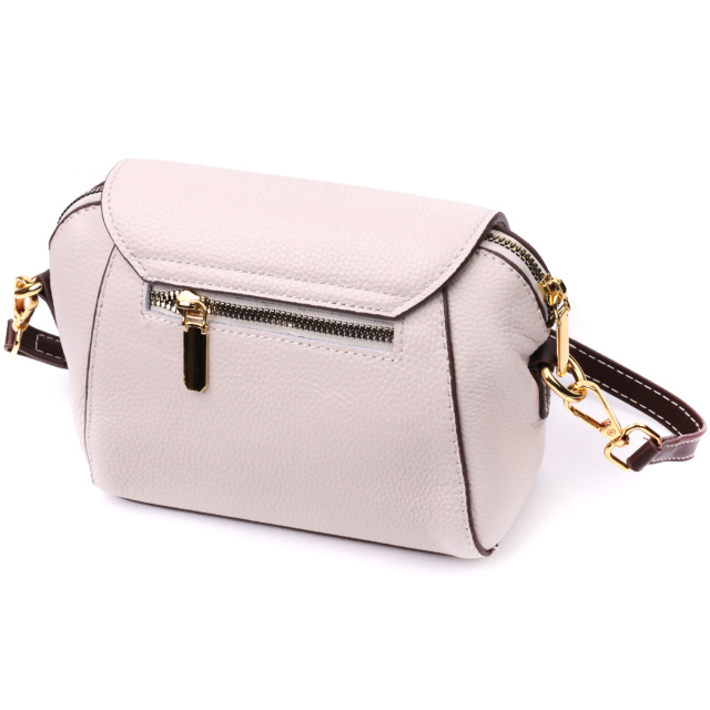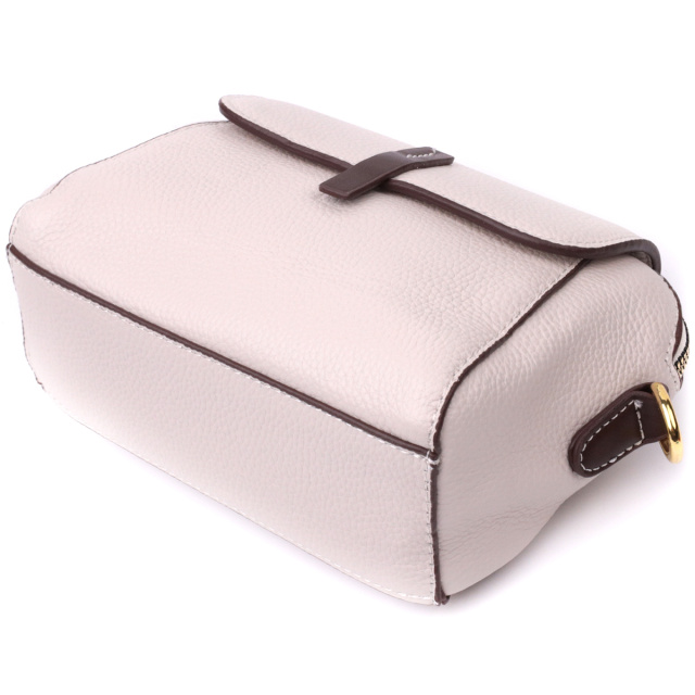 Стильная женская сумка с уплотненным дном. Изделие пошито из качественной натуральной кожи, которая долго носится и не теряет свой первоначальный вид. Аксессуар состоит из одного основного отделения, внутри которого карман-перегородка на молнии, карман открытого типа, потайной карман на молнии и еще один карман на молнии снаружи. Носить сумку можно в руке, на плече и через плечо, для этого имеется кожаный съемный ремень. В изделии использована качественная фурнитура цвета желтого золота. Универсальный вариант сумки как на вечер так и в качестве сумочки на каждый день.