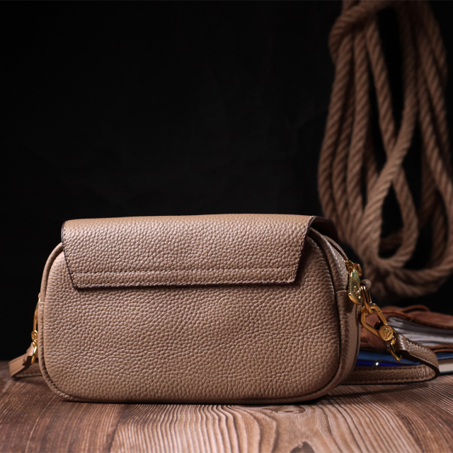 Трендовая женская сумка с фигурным клапаном из натуральной кожи. Аксессуар состоит из одного основного отделения, потайного кармана на молнии и кармана открытого типа. Носить сумку можно на плече и через плечо, для этого имеется съемный кожаный ремень. В изделии использована качественная фурнитура цвета желтого золота. Кожаная сумка - лучший подарок для любой девушки.