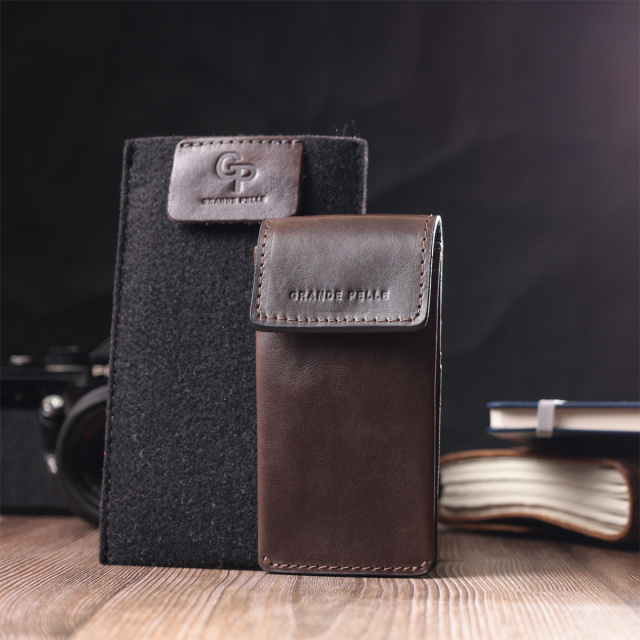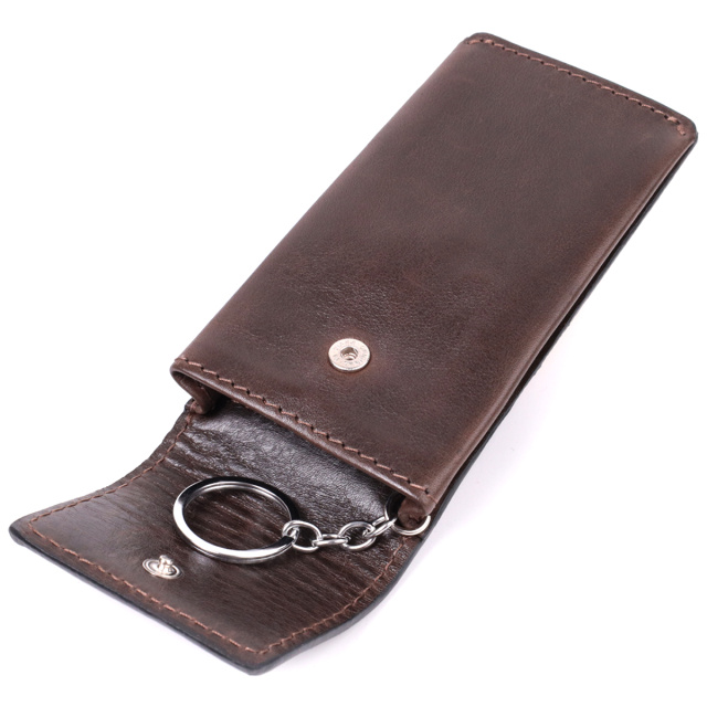 Добротная ключница в виде футляра из натуральной высококачественной кожи украинского производства. Имеет красивый коричневый цвет, благородный блеск и серебряную фурнитуру. Ключница это просто незаменимый аксессуар для всех, кто бережно относится к содержимому своей сумки, ведь они способствуют порядку и сохранности Ваших вещей. Упакована ключница в красивый войлочный чехол. Качественный кожаный аксессуар это всегда отличная идея для подарка родным и близким людям.